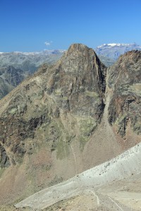 Finding the buttress involves a bit of head scratching, we should have stayed high and dropped down once we located the route from the plateau, we however try and work our way in from the bottom. This involves traversing first down then up ground which can’t decide if it wants to be steep and loose or steep and grassy, at least its settled on steep. We finally locate our route, and thankfully the rock is still in deep shadow offering us some protection from the sun, the granite will become an oven later and we want to be well up the route by then.