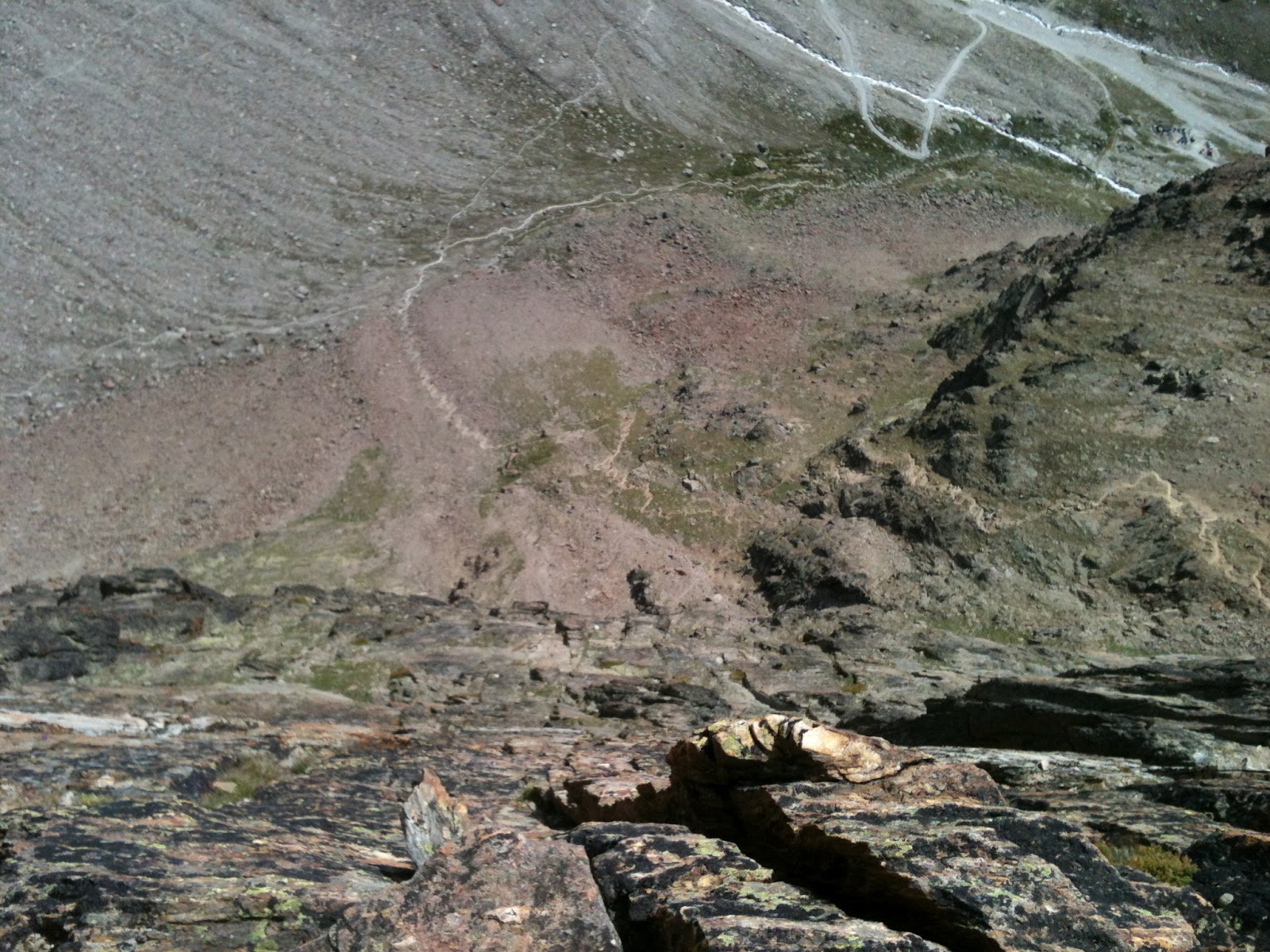 Finding the buttress involves a bit of head scratching, we should have stayed high and dropped down once we located the route from the plateau, we however try and work our way in from the bottom. This involves traversing first down then up ground which can’t decide if it wants to be steep and loose or steep and grassy, at least its settled on steep. We finally locate our route, and thankfully the rock is still in deep shadow offering us some protection from the sun, the granite will become an oven later and we want to be well up the route by then.
