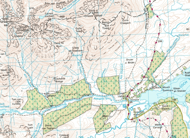 Looking for some climbing on a dull overcast day Dom and I decided to approach from the south parking near Inveroran and walking up the old stalkers track that runs up into to Corie Toaig and the col at 668m between the two Munros. From here it looked like a short traverse round to the lochain and the climbing.